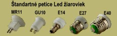 LED žiarovky sa štandardne dodávajú na 12V, 110V a 240 V so závitmi a uchytnými svorikami MR11, GU10, E14, E27, E40.